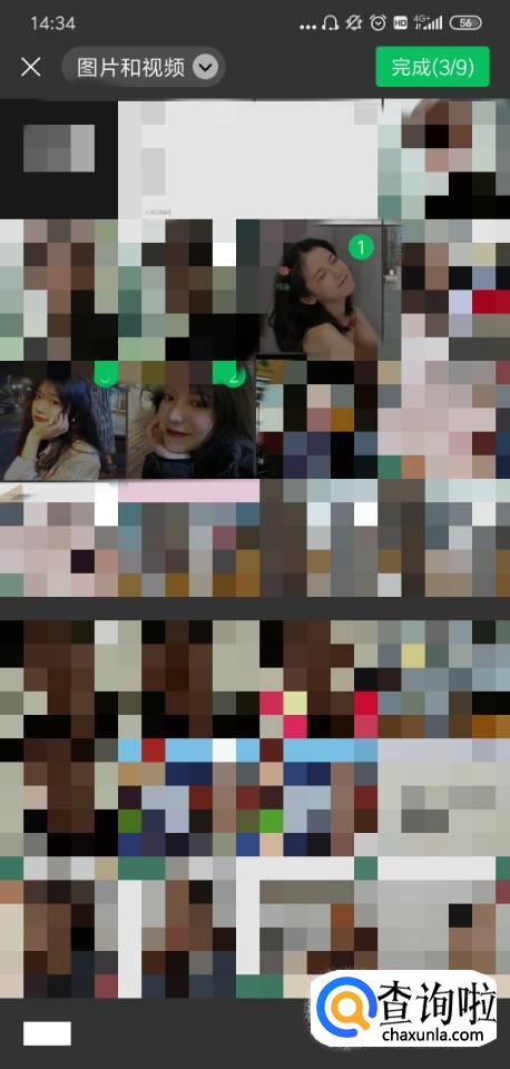 选择完毕后,点击右上角的完成(注意:最多只能选择9张图片)