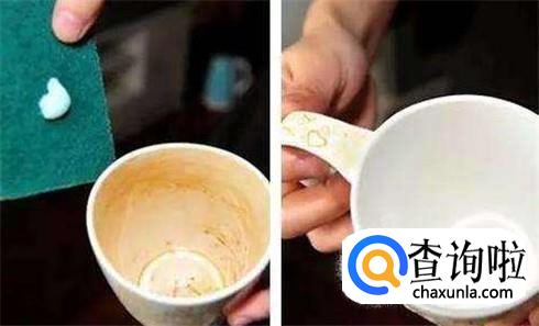 可以用牙膏清洗。我们平时刷牙的牙膏,去茶垢能力是很强的,把牙膏涂在茶杯中,然后用毛巾蘸着牙膏,用力刷,可以先用热水烫一下水杯,这样可以软化茶垢,更好地擦干净。