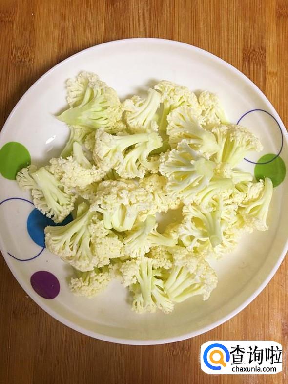 菜花掰成小朵。