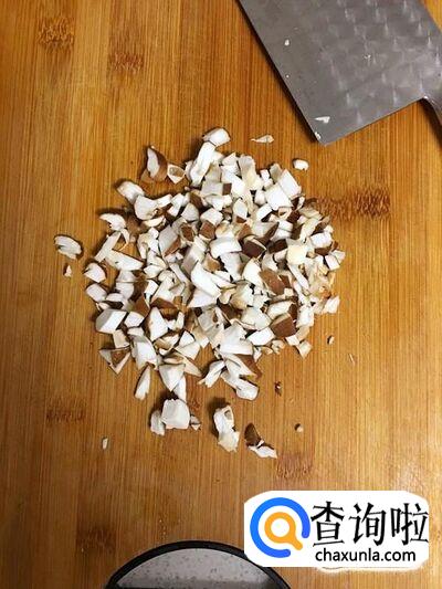鲜香菇清洗干净,然后切成小粒。