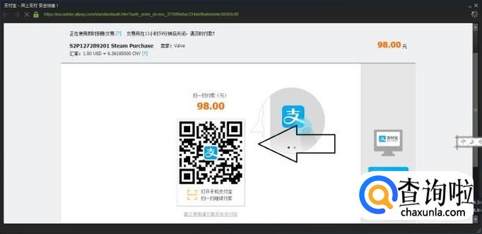 进入支付页面过后,扫描支付宝二维码,支付购买金额98元,即可购买完成