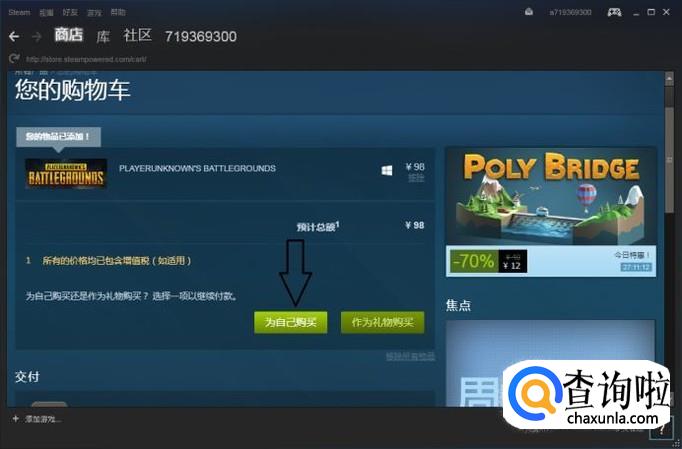 点击“为自己购买”,若是要送给其他人就点击“作为礼物购买”,点击过后会进入支付页面