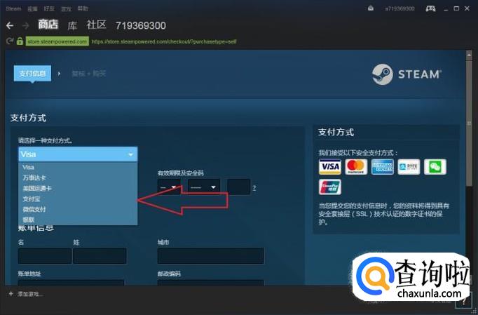 点击支付方式,这里推荐“支付宝”或“微信”,这两种支付方式最为方便,安全,这里我点击的是支付宝(微信相似)