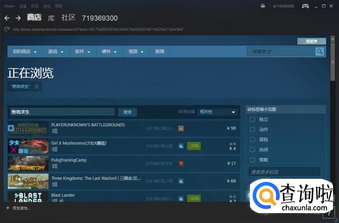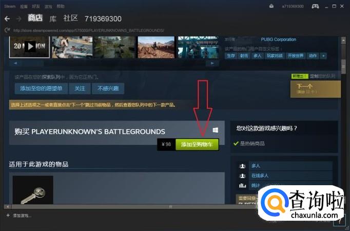 点击第一个,英文叫“PLAYERUNKNOWN'S BATTLEGROUNDS”(这就是绝地求生),进入购买商店