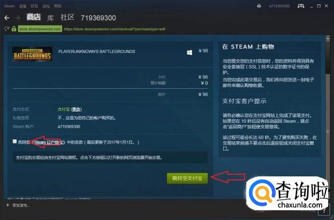 进入支付页面过后系统会给你一段时间确定购买,点击“我同意”再点击“跳转至支付宝”才能进入正式支付页面