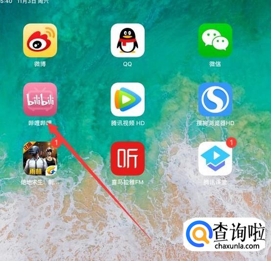 打开iPad,找到哔哩哔哩,点击并进入,如图所示。