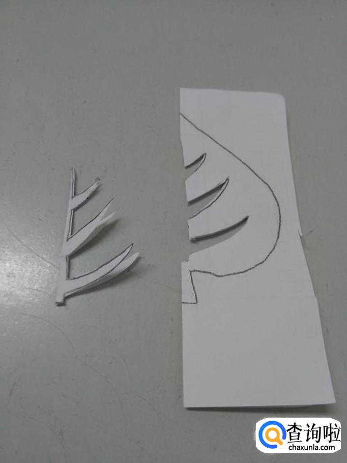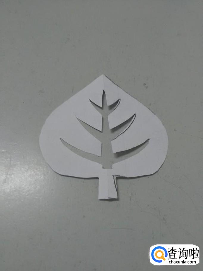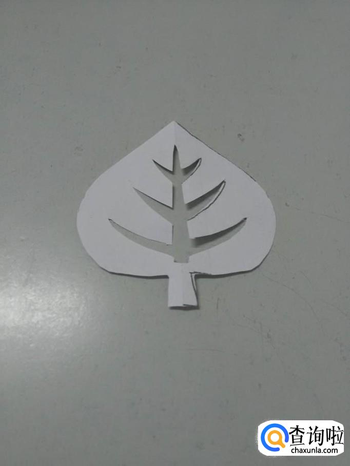 把纸打开,就是一片对称的树叶。这个剪纸不难,但是,剪中间叶脉时要细心,不要剪断。