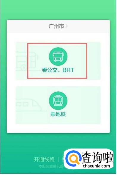打开微信乘车码后会有选项,可以选择公交、BRT或者是地铁,我们点击前者。
