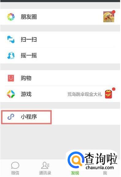 首先我们先打开微信里面的发现,从发现进入到小程序功能。
