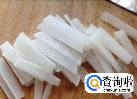 首先将萝卜清洗干净,切成条状,注意切的时候不要切得太大,不然很难入味。