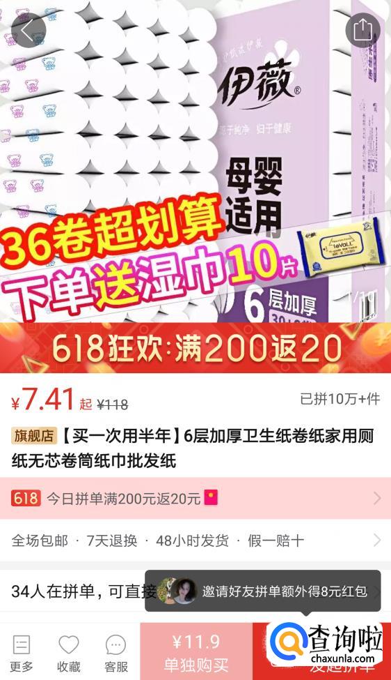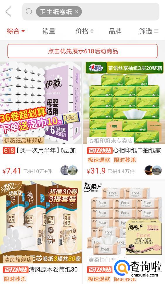 也可以直接在搜索框中输入自己想要买的东西,比如我搜索卫生纸就在下方的选项中选择一个打开。