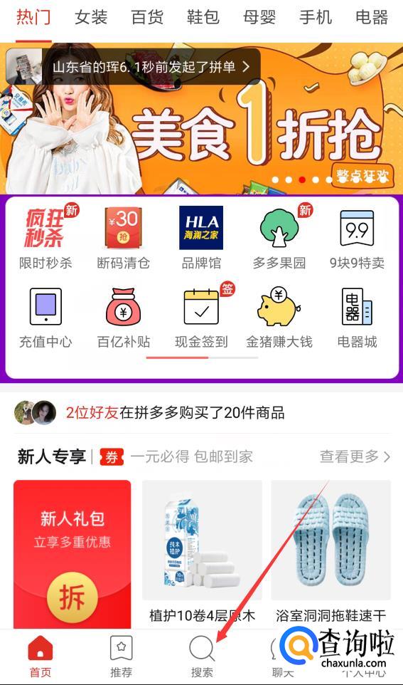 点开拼多进来找到放大镜就可以搜索我们想要的东西了。