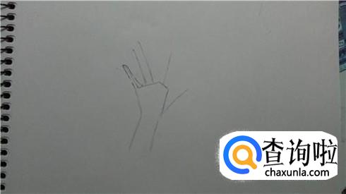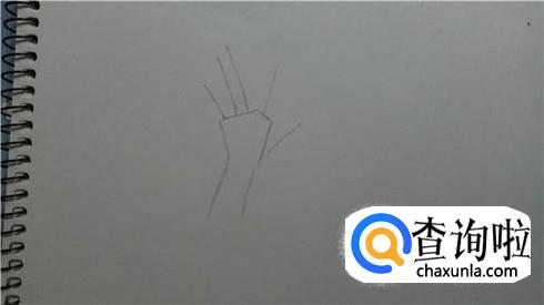 然后在画好的手掌上面画五根线(如图所示)。控制好间距。