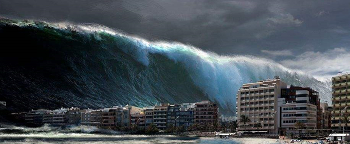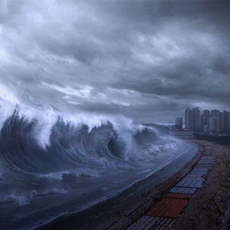 海啸就是由海底地震、火山爆发、海底滑坡或气象变化产生的破坏性海浪,主要受海底地形、海岸线几何形状及波浪特性的控制,呼啸的海浪冰墙每隔数分钟或数十分钟就重复一次,摧毁堤岸,淹没陆地,夺走生命财产,破坏力极大。海啸所产生的浪高取决于海水的深度。海啸就是由海底地震、火山爆发、海底滑坡或气象变化产生的破坏性海浪,海啸的波速高达每小时700~800千米,在几小时内就能横过大洋,波长可达数百公里。