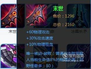 末世,基本上是打攻速流的射手首出装备,特性:加60物理伤害30%攻速10%物理吸血。配合上后羿的1技能,能够很好的为后羿后期发育打下基础。