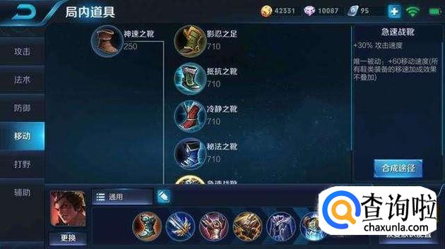 极速战靴,攻速鞋是个人比较喜欢推荐的,既然是打高爆发的攻速流,那攻速鞋所带来的30%攻速正好是后羿的需求。
