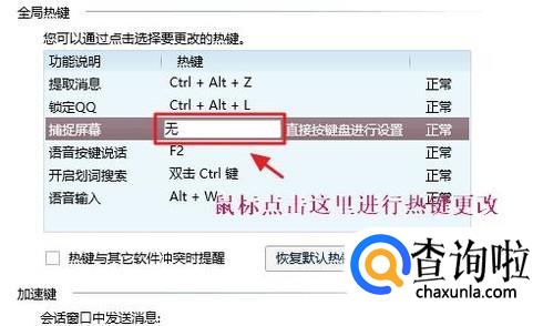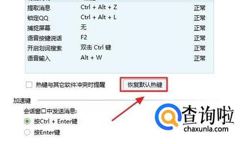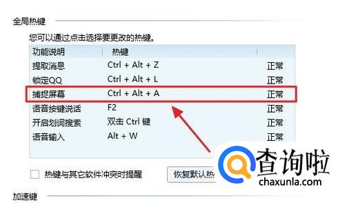 如果和别的组合键有冲突,那么右侧会有提示,然后我们就可以自行设置其他按键了,以后如果没有冲突了我们可以点击下方的“恢复默认热键”就可以了;