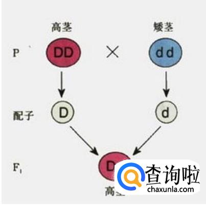 显性基因,无论在同质还是异质的情况,都会影响表现型,则称为显性的。显性基因决定的遗传过程,称为显性遗传。如下,D是显性基因,d是隐形基因,但是表现为显性性状——高茎。