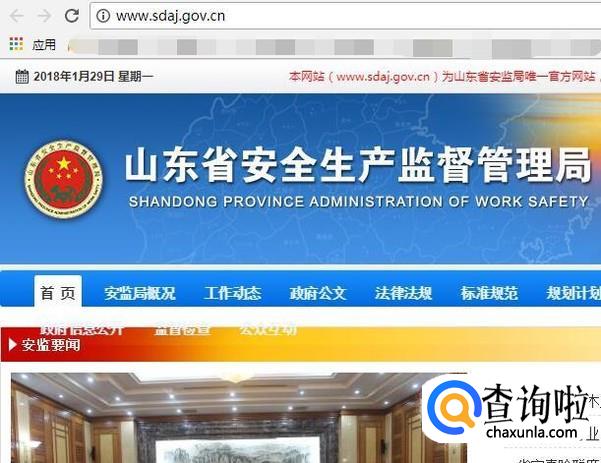 首先我们打开“山东省安全生产监督管理局”网站,网址是http://www.sdaj.gov.cn/。