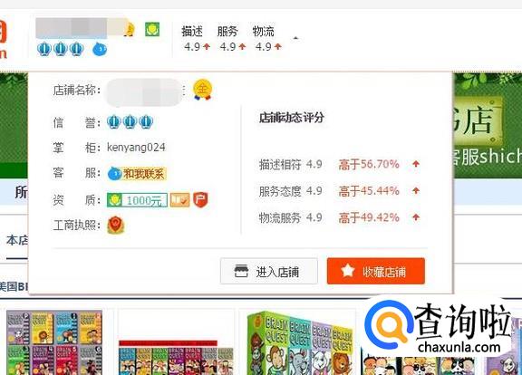 登录个人信息,然后搜索你所要查询的卖家书店进入店铺,点击左上角的绿色标志。
