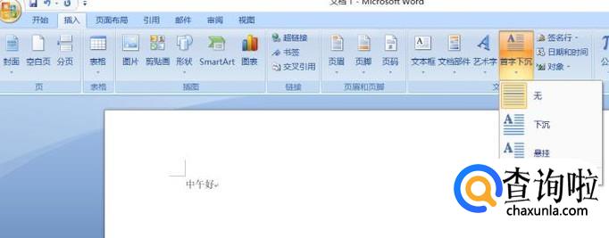 紧接着,我们找到并且选择点击菜单栏的插入,再点击首字下沉。