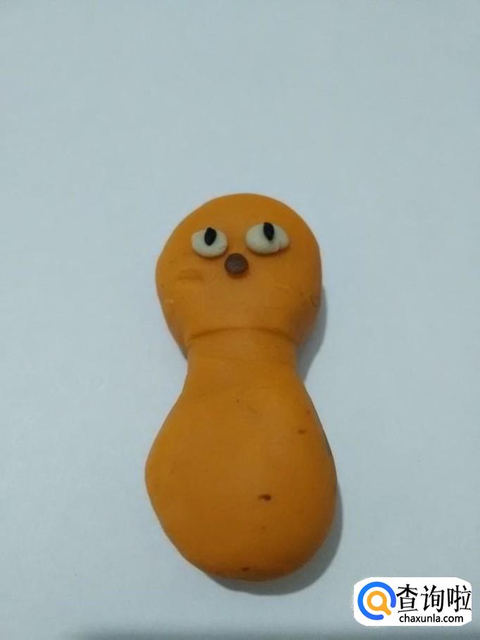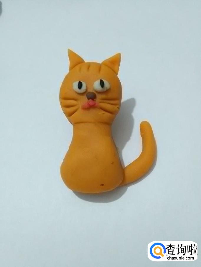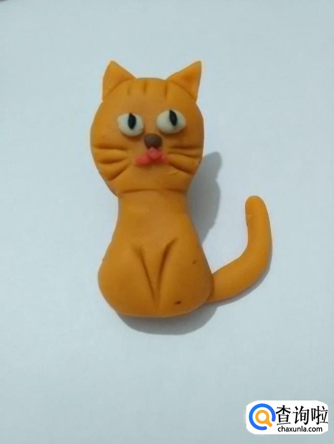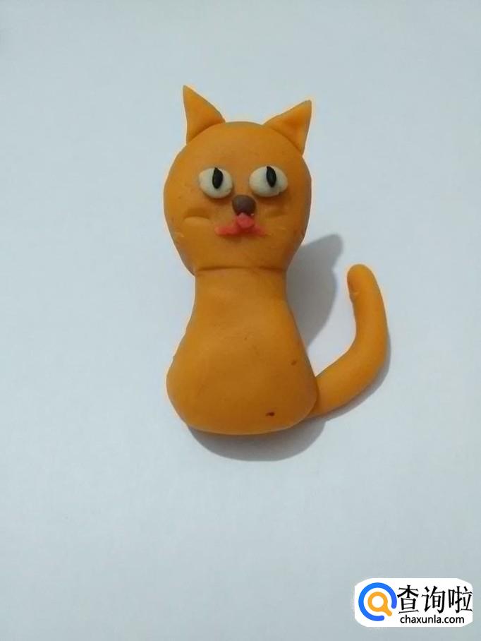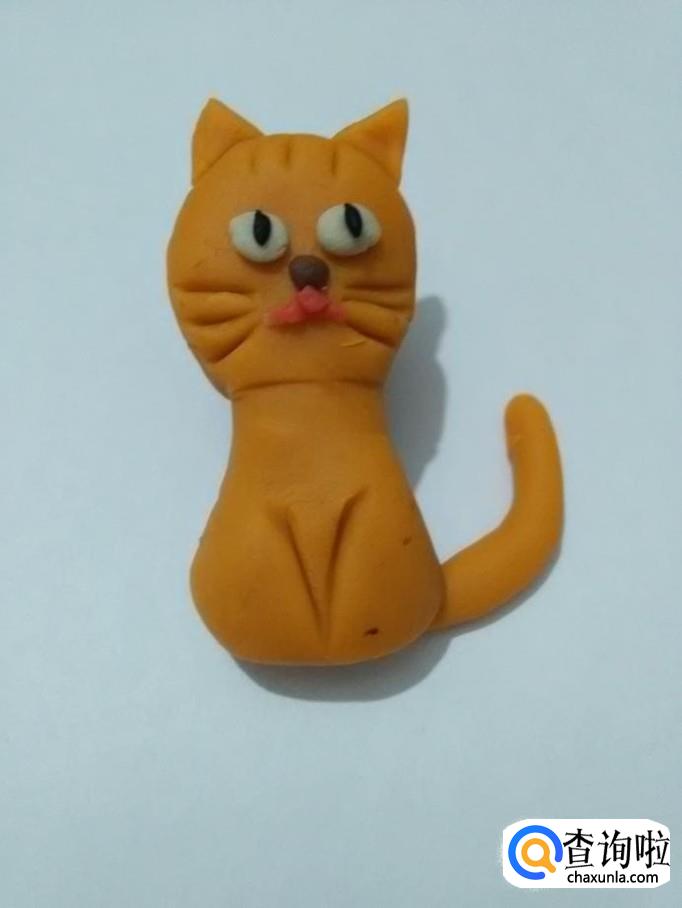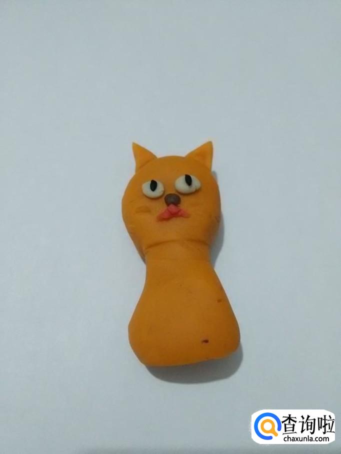 用桔色搓一个长条,粘在小猫身体右侧,当作尾巴。
