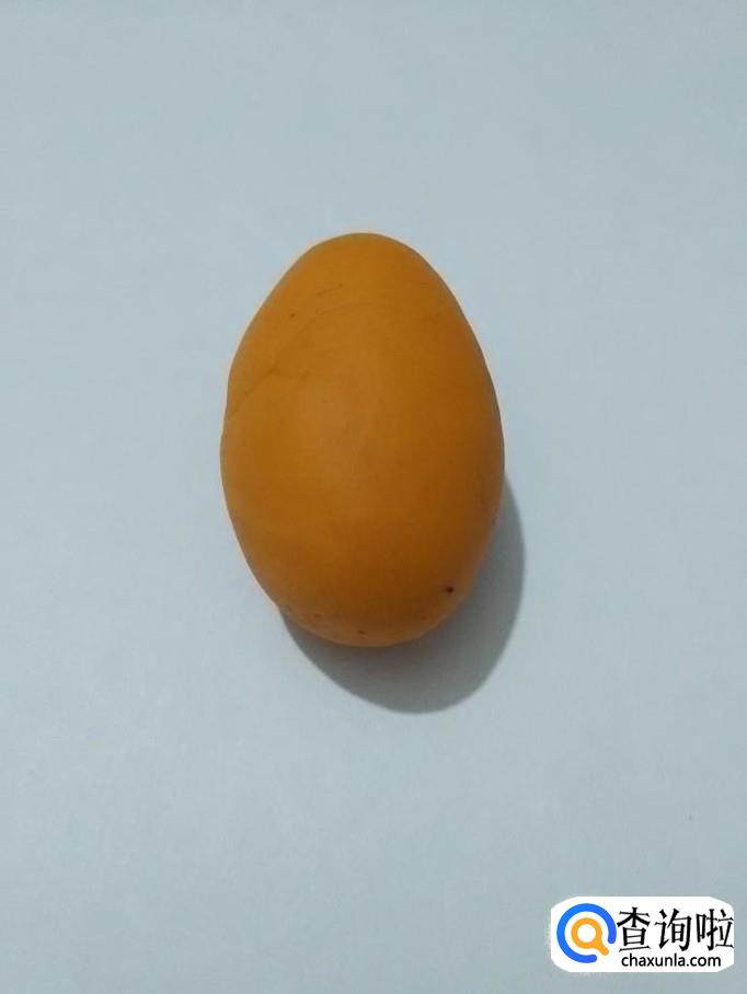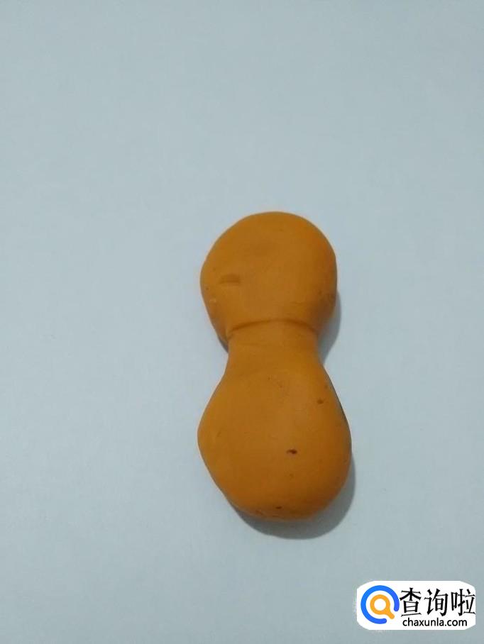 取一块桔色橡皮泥搓成椭圆形,当作小猫的身体。