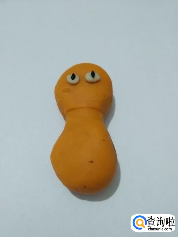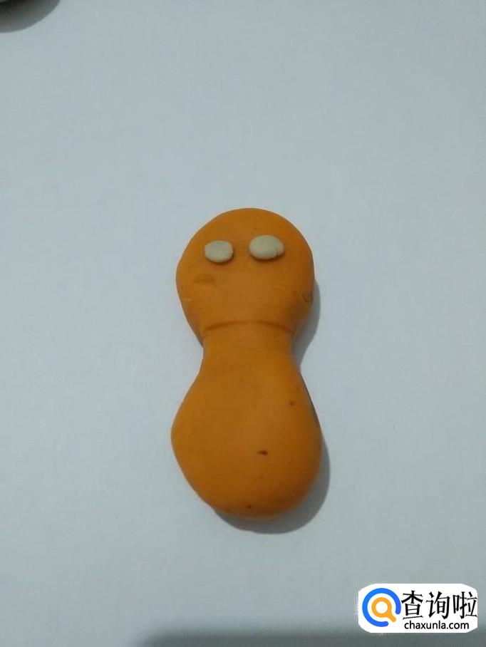 用两块黑色,搓成细细的小条,粘在眼睛上面,当作眼珠。