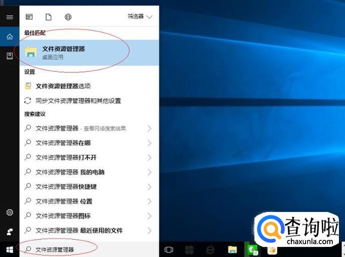 如图所示,搜索框输入"文件资源管理器"。Cortana(小娜)显示搜索结果,点击"最佳匹配→文件资源管理器"项。