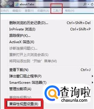 在弹出的下拉菜单,选择“兼容性视图设置”。
