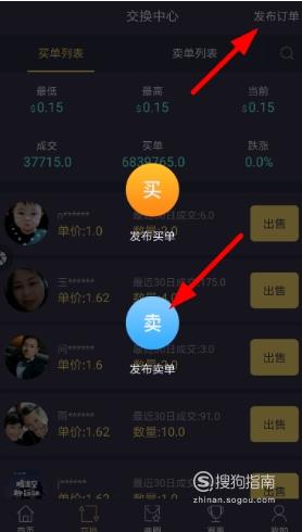 进入“交换中心”之后点击“发布订单”按钮,选中“发布卖单”