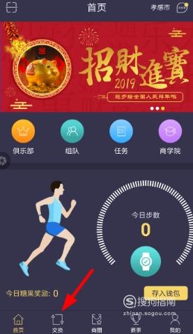 打开趣步客户端,进入底部“交换”