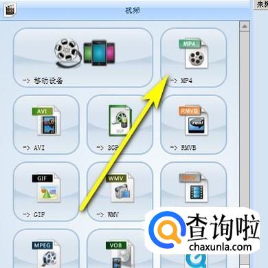 我们用格式工厂这款软件来压缩MP4格式视频。打开格式工厂软件。进入到操作界面中。点击视频中的“MP4”;如图所示,