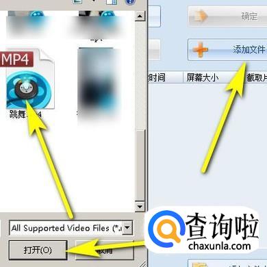 转到MP4操作界面。点击“添加文件”按钮,弹出对话框,找到并点选目标视频,再点:打开