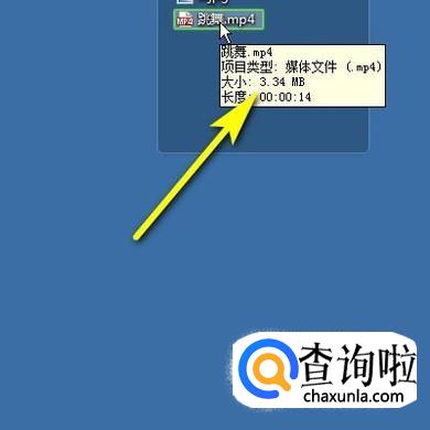 转到电脑桌面上,鼠标放在视频文件这里,可以看到,该视频已压缩到了3.34M