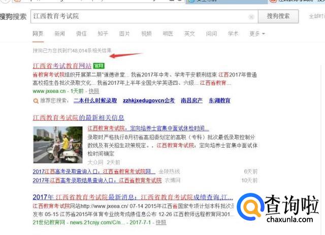 在搜索栏内输入本省考试院,如江西考试院。点击搜索。