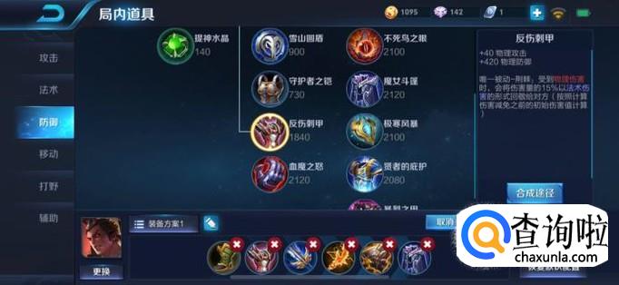 反伤刺甲:反伤刺甲是一件防御装备,能够反伤给敌方英雄的给力装备,反伤效果可以克制大部分物理英雄,给吕布增强生存保障。