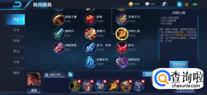 闪电匕首:提升的攻速加成,使吕布的伤害更为暴击。