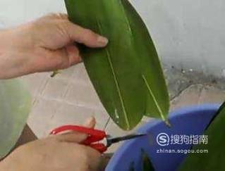 接下来我们需要把新鲜的粽子叶用清水干净后,挑去那些有漏洞、发黄的,剪掉粽叶的根部。
