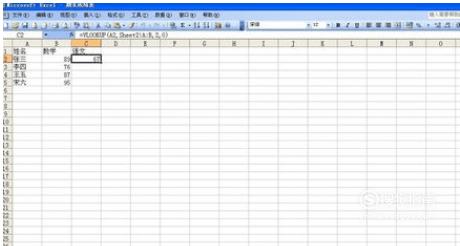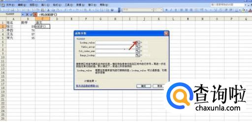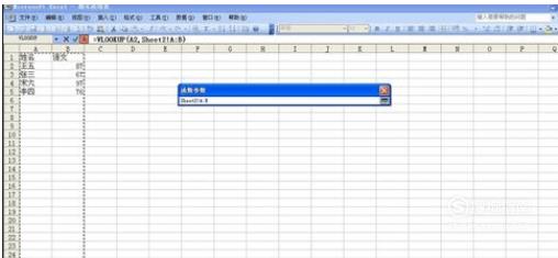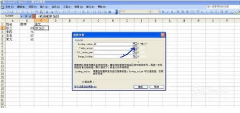 点击“张三”名字,即“A2”单元格,表示我们要查找“张三”的成绩,点击上面的按钮回到面板上
