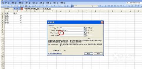 因为在表2中语文成绩在第二列,所以第三项我们填入数字“2”