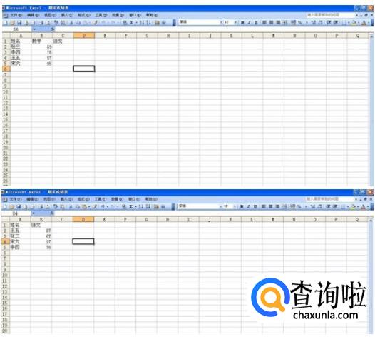 如下是一个Excel工作薄中的两张表,分别为Sheet1和Sheet2,下面分别以表1和表2来代替。我们要把表2中的语文成绩导入到表1中,但是从图中可以看出表1和表2名字并不一一对应