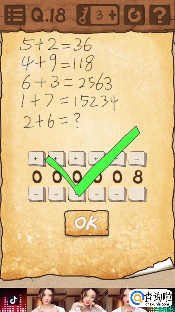 第18关,其实前面的都是一些用来蒙蔽你的,而我们只需要计算2+6等于8即可。