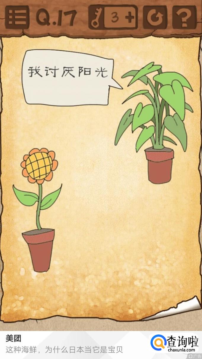 第17关,一个喜欢阳光,一个不喜欢阳光,那么我们就把讨厌阳光的蒙住即可。