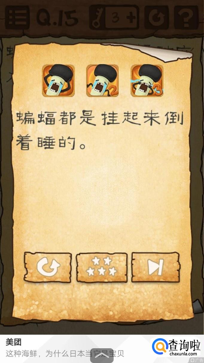 第15关,蝙蝠都是倒挂着睡的,那么把你的手机倒过来就好了。