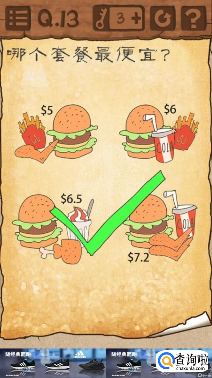 首先,第13关的话挺简单的,就根据它的数字来看。五美元的最便宜,所以选择第一个。