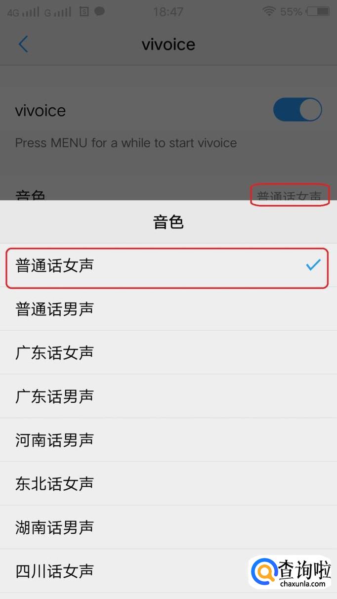 打开vivoice按钮,会出现扩展选项,如图所示,点击“音色”,选择一种你喜欢的发音形式。