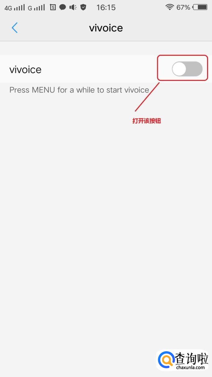 然后我们就可以使用vivoice功能了,如图所示,长按手机的左功能键。