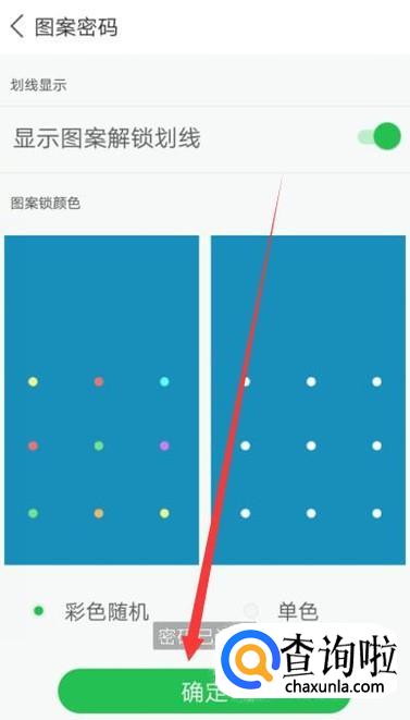 进入该页面之后,选择图案解锁划线颜色,点击“确定”即可,如图所示。