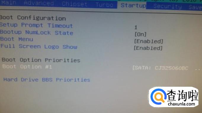 我们先开机按DEL键进入主板BIOS,到“启动”菜单下看看启动设备里有没有硬盘,如图,没看到硬盘选项。我们可以换个SATA供电插头试试,或者换根数据线,在换到主板上别的插座上试一下,还不行就是硬盘挂掉了,需要更换新的硬盘。
